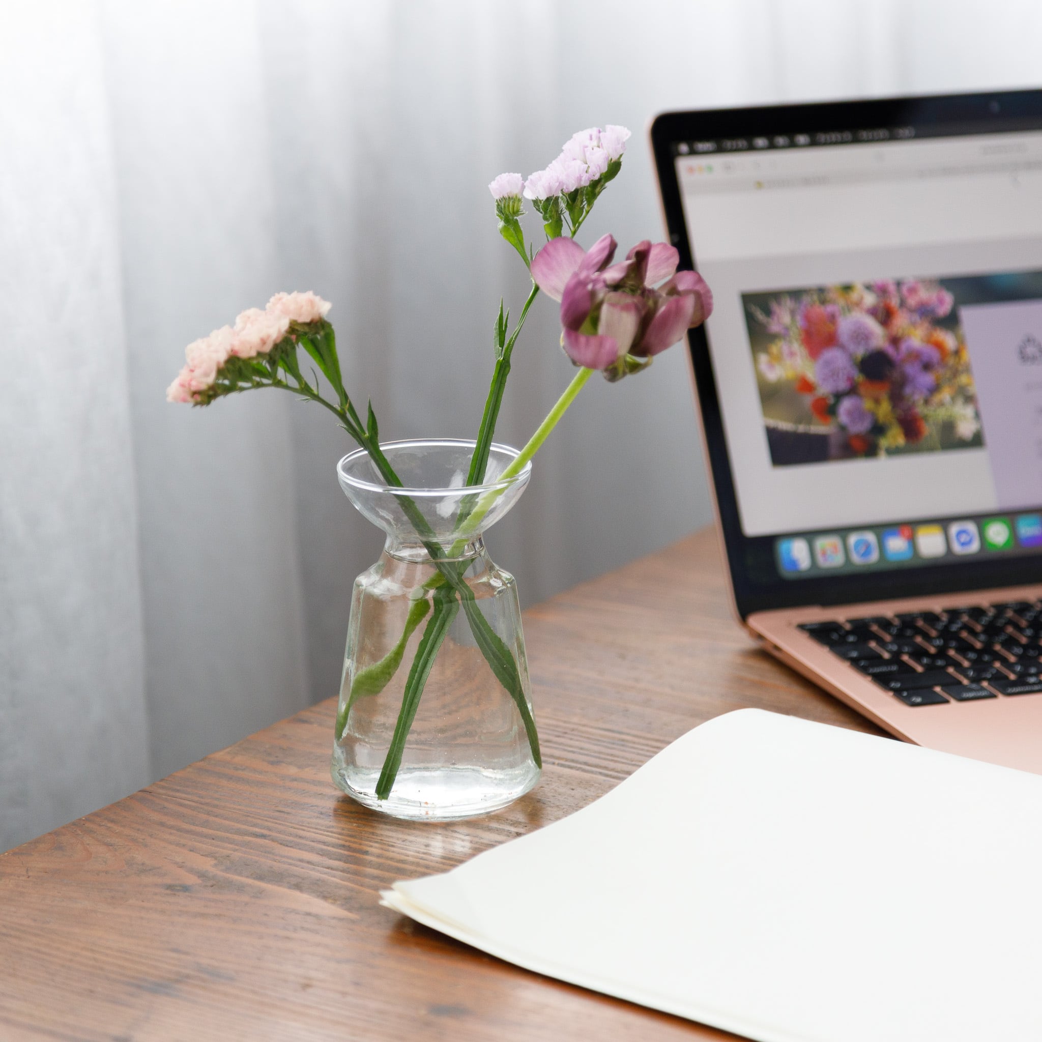 小ぶりな花瓶はデスクの横や、窓際