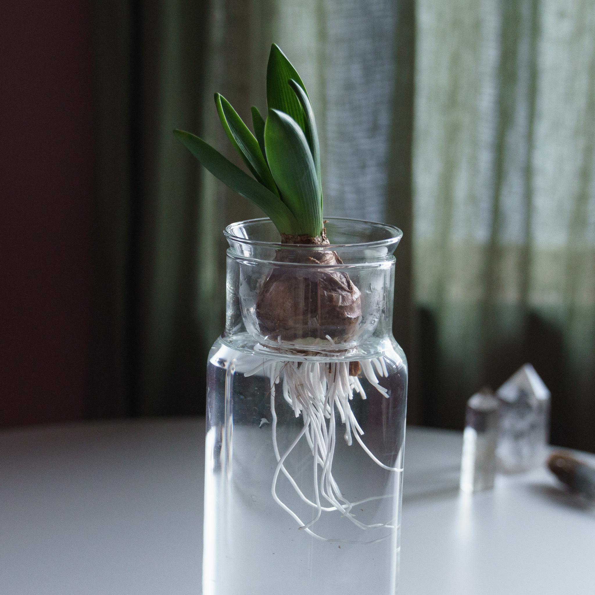 他の球根や花瓶と並べてオーケストラのように飾っても素敵。