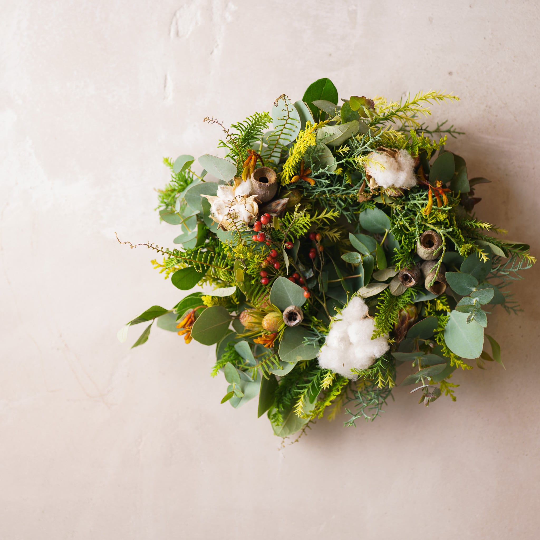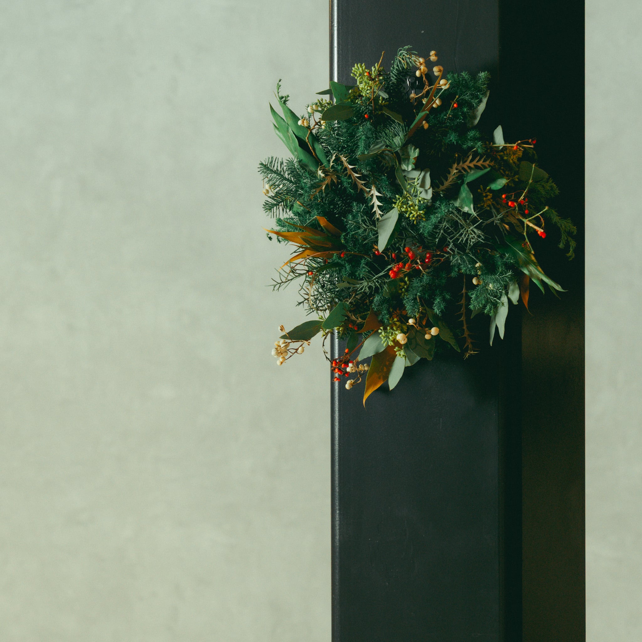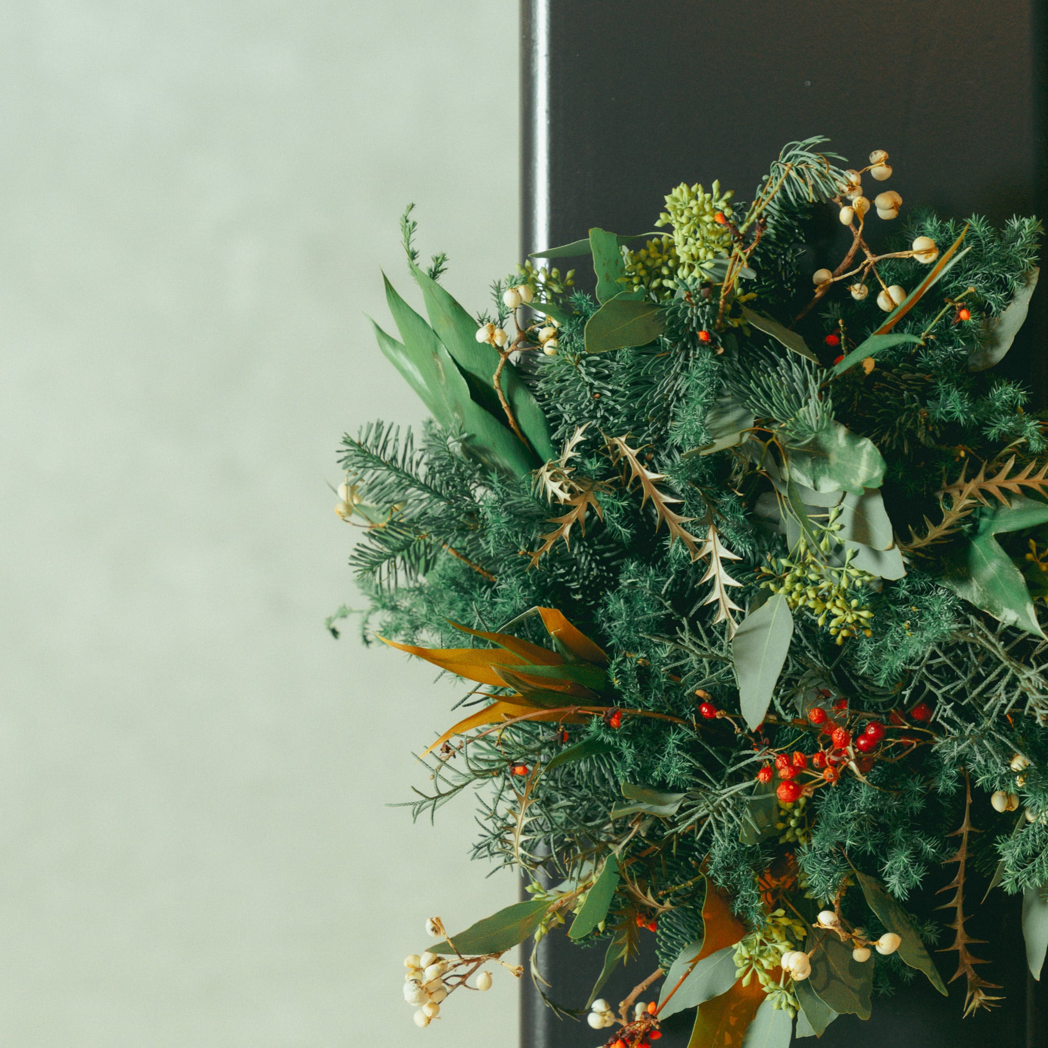 針葉樹とユーカリの香りたっぷりのクリスマスリース。